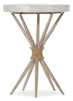 - Finish Description: Buff Almond: a lime washed tonal finish with subtle texture. Capiz shell top and jute rope accents. Distressing includes gouging and worm holes.