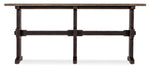 Unit price perReimagining an historical design with a fresh take on finish, function and form, the stunning Americana Trestle Console Table has a two-tone finish combining a parquet Oak Veneer top design with a Molasses finish on the base. Capturing the essence of a well-loved heirloom, the deep dark Molasses tone over Cathedral Oak Veneers adds warmth, while the variations in color reveal the natural beauty of the wood beneath. The base is an interlocked carved stretcher design. At only 16 inches deep, this striking piece fits into even tight spaces. Solid-wood edge top.