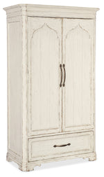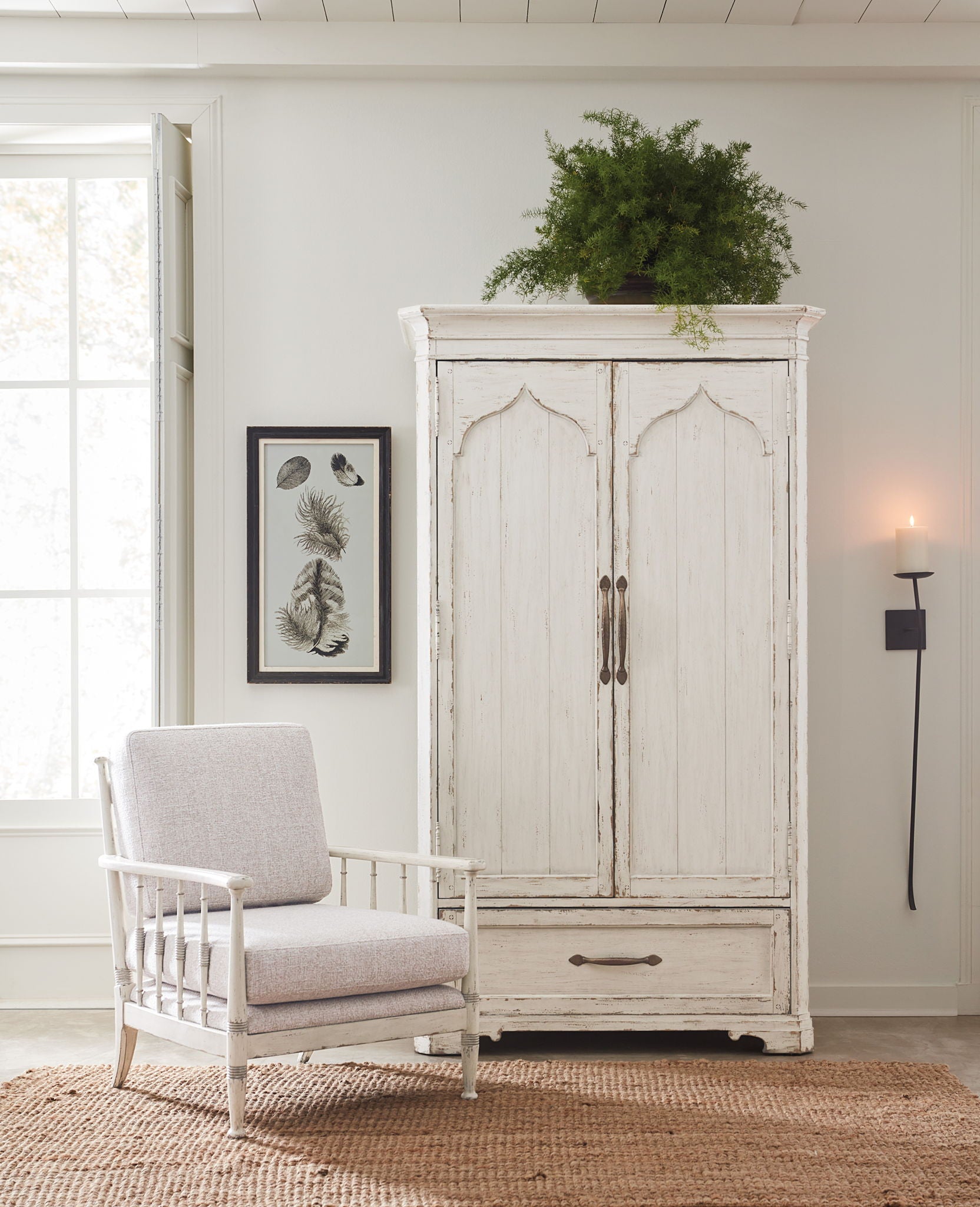 Unit price perReimagining an historical piece with a fresh take on finish, function, hardware and form, the Americana Wardrobe has shaped carved door fronts with an architectural arched design and scroll accents on the base. Crafted of Oak Veneers, it is finished in the time-worn with a warm interior finish. There’s mirrored glass on the interior of the doors, one removable clothing rod, two adjustable wood shelves and 3 self-closing drawers. The top left drawer has black removable felt liner and the top right drawer has a black felt liner and removable felt-lined jewelry tray. The one bottom drawer is self-closing.