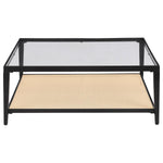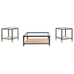 This coffee table set combines modern design with functional versatility for your living room. Featuring powder-coated metal frames, these tables boast a sleek, minimalist look. Clear tempered glass tops add an elegant and open feel, while woven polyethylene (PE) rattan shelves provide texture and convenient storage options. Perfect as a cohesive occasional table set, this design effortlessly blends natural and contemporary elements to elevate your space with style and practicality.