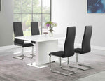 - Chairs come in black or white leatherette to customize your dining room ambiance