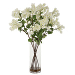 • Effortlessly Arranged As If Freshly Cut, These Bougainvillea Branches Exemplify The True Characteristics Of Live Florals. Cream Blooms Are Accented By Natural Rocks In A Clear Glass Vase.