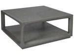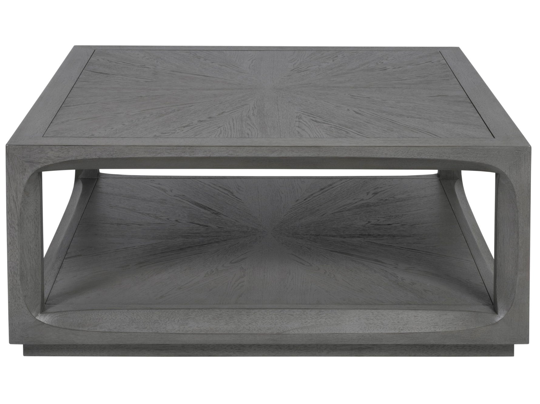 • The Top And Bottom Shelf Are Crafted From Flat-cut Veneers In A Starburst Pattern, With Legs And Rails Routed In A Continuous Ellipse, In A Medium Gray Wire-brushed Finish.