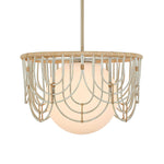 Delicate Arches In Warm White Finish With Natural Rattan Wrapping Give A Nod To 70's Designs With A Large 11" Center Opal Glass Globe All Updated For Today With Antique Brass Accents. 1-60 Watt Max, Edison Socket. Bulb Not Included. Supplied With 15' Wire, 3-12" Stems And 1-6" Stem For Adjustable Installation.