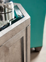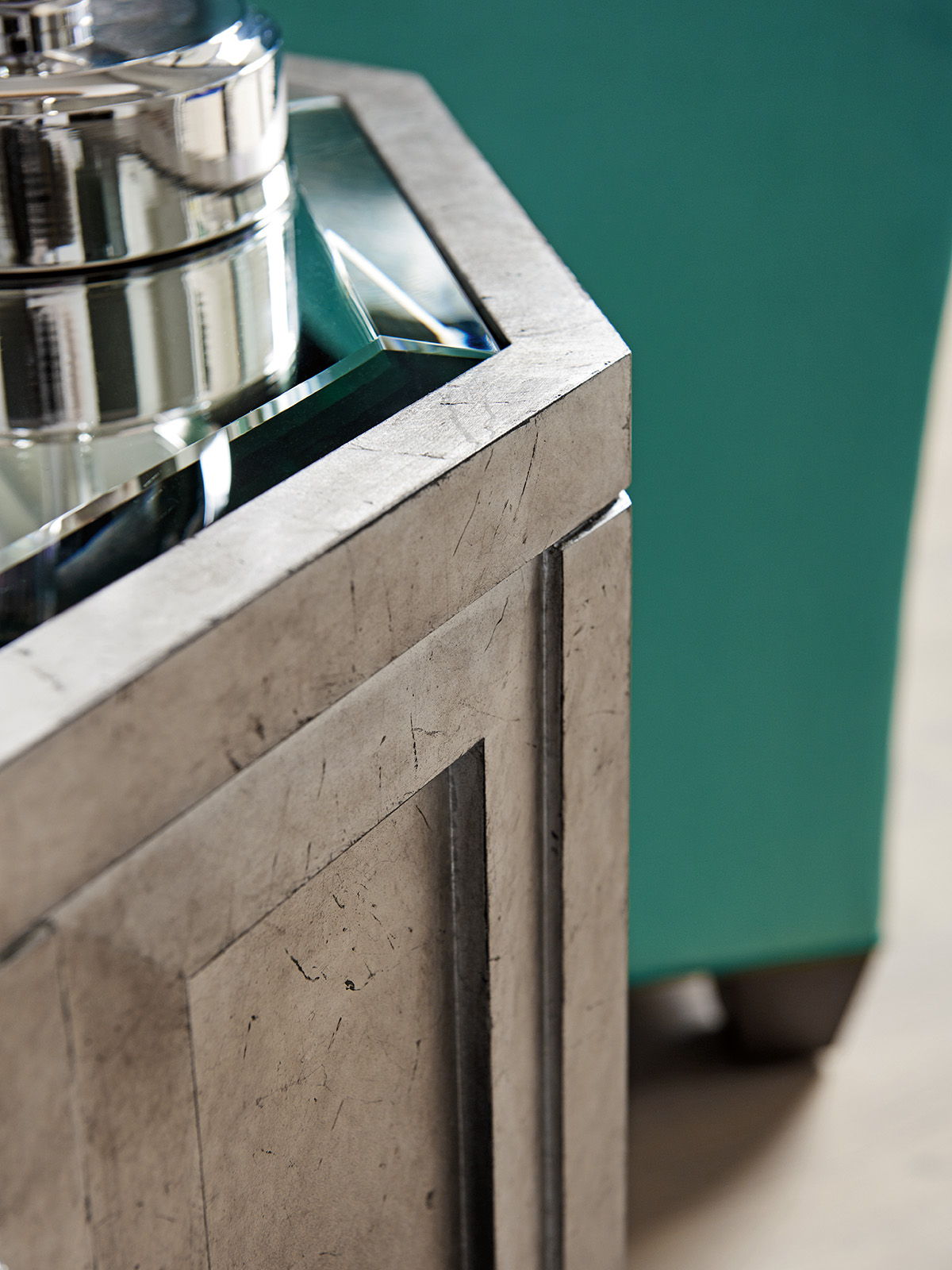 Unit price perAriana offers a high-fashion take on modern luxe living, blending a hand-glazed platinum finish with sophisticated accents like burnished silver leaf, platinum-finished stainless steel, elegant silver gray drawer interiors and polished silver marble with veining in shades of taupe and gray. Designs feature classic lines, with elements like raised panel doors, tapered legs and hand striping. Custom upholstery styles showcase fresh color palettes and tailoring details like decorative tapes and beaded fringe. The result is a lifestyle aesthetic that celebrates a chic, sophisticated interpretation of today's contemporary design.