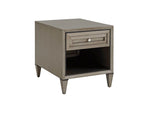 - This End Table Offers A Full-extension Self-closing Drawer With Silver Gray Interior, With A Storage Shelf Below