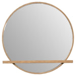 Make the most of your dresser space with this elegant, modern, dresser mirror, designed with a clever built-in tray below and a spacious round mirror above to help you prepare for the day. A wire-brushed sand wash wood frame presents an earthy light tone hue. The felt-lined tray secures jewelry and essentials, keeping a clutter-free dresser surface for restful bedroom retreats.