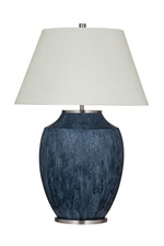 The Ashe Table Lamp features a contemporary coastal design with a rich blue finish that adds a vibrant touch to any space. Its oversized design makes a bold statement, creating a striking focal point in your room. The combination of modern style and coastal charm makes this lamp a versatile piece, perfect for adding a relaxed yet refined look to your home. The Ashe Table Lamp offers both style and functionality, enhancing your decor with its unique and inviting presence.