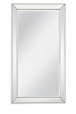 Elevate the elegance of your home with the Ashley Floor Mirror. Its glamorous design features a beveled glass rectangular frame adorned with intricate beaded detailing, exuding luxury in every angle. The stunning silver finish, complemented by white and silver color details, adds a touch of sophistication to any room. Crafted with high-quality mirror and wood materials, this mirror not only adds style but also durability to your decor.