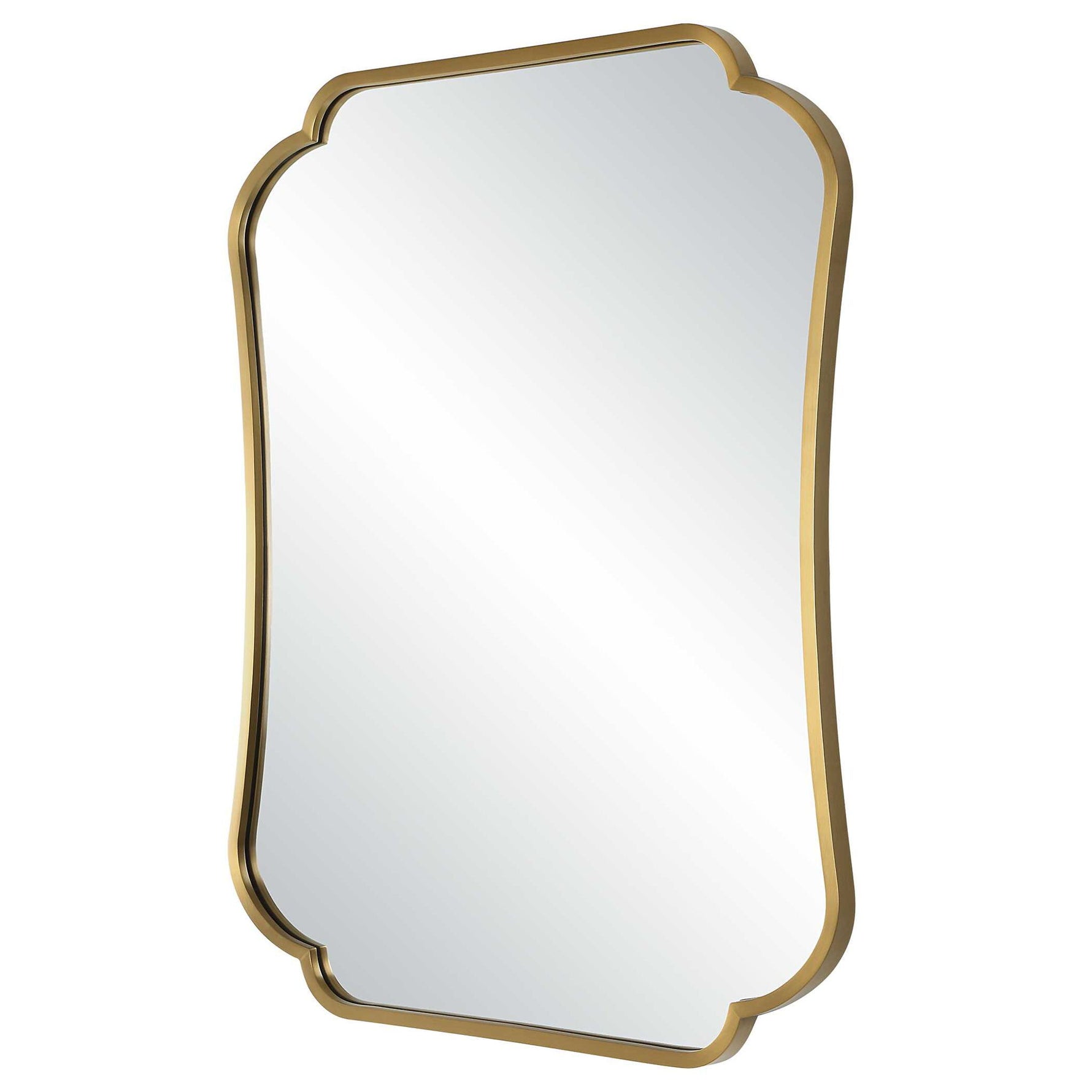 The Athena Mirror Offers An Update To A Traditional Look Featuring A Petite Stainless Steel Frame With Elegantly Curved Details Finished In A Plated Brushed Brass. May Be Hung Horizontal Or Vertical.