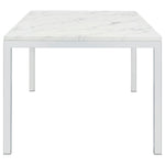Dress up a dining room with striking, modern opulence. This gorgeous, contemporary dining table flaunts a smooth, white, marble top for a luxurious design that's sure to impress. The table base is made with top-quality metal in a gleaming chrome finish that shines in the light. From everyday dinners to elaborate feasts, the rectangular surface provides all the space you need for family dining enjoyment. Surround this modern table with your favorite chairs to complete a formal dining room in style.