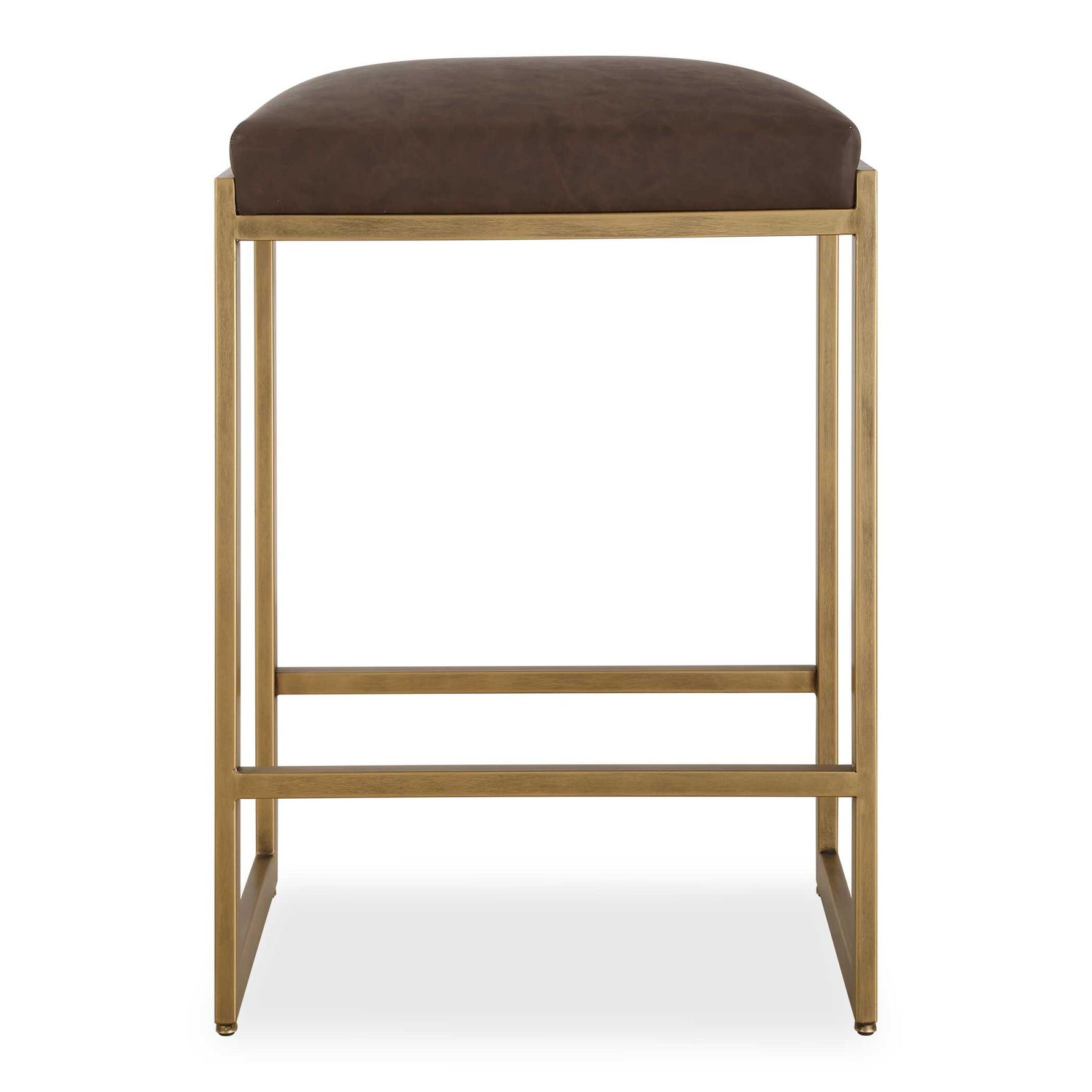 Clean Contemporary Lines Are Accented With Subtle Stylish Details. The Antique Brushed Brass Finished Iron Is Complemented With An Inset Cushion Upholstered In A Rich Cocoa Faux Leather.