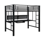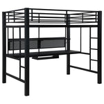For workaholics who never stop thinking about their next great innovation, this workstation loft bed is a godsend. Combine work and sleep in a modern way with demonstrable sophistication. Metal loft bed is finished in black. Below the bed is work area that includes desk with keyboard tray and storage shelf. A delightfully contemporary addition to any living space, particularly a loft.