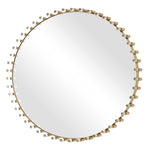 The Avelyne Round Mirror Blends Elegance With Modern Design, Featuring A Plated Antique Brass Outer Frame That's Surrounded By Thick Acrylic Rods.