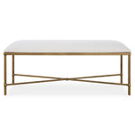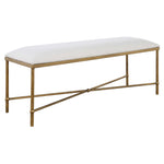 - Thoroughly Modern Yet Inspired By The Classics, This Bench Displays A Stylish Iron Frame In A Rich Antique Gold Finish, Upholstered In A Crisp White Textured Fabric.