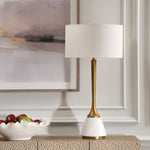 - This Table Lamp Showcases A Fusion Of Refined White Marble And Plated Antique Brass. With Its Elegant Fluted-style Neck, This Lamp Adds Timeless Sophistication To Any Space.