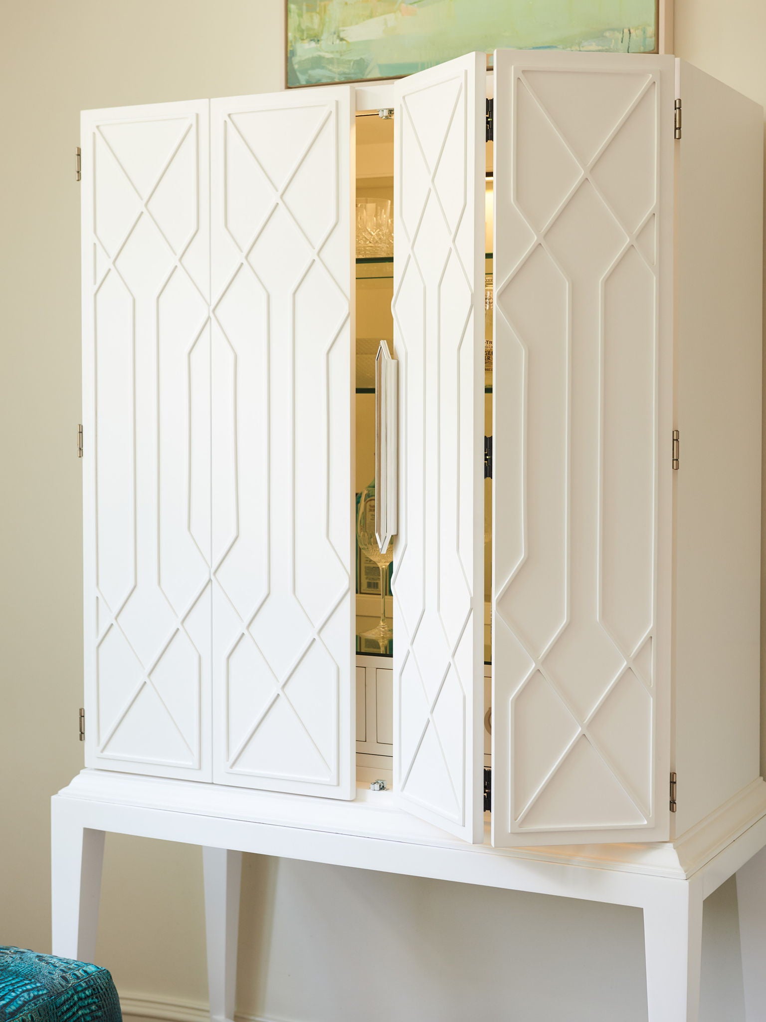- Transitional Geometric Fretwork On The Bifold Doors Frames A Piece Of Statement Hardware In Polished Nickel