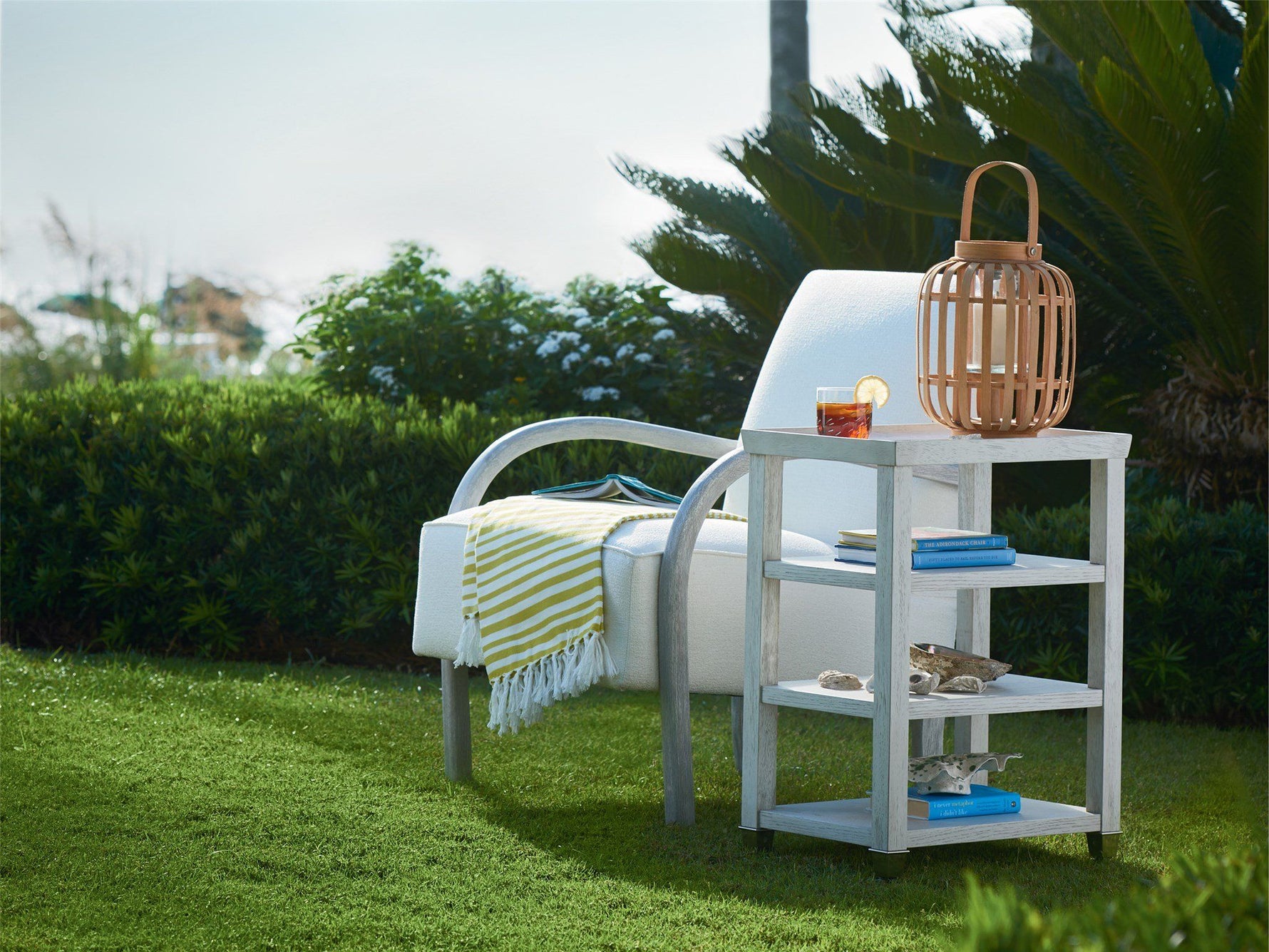 Exploring the balance between contemporary style and rustic grace, the Bahia Honda Accent Chair features a fully upholstered body and gently rounded wooden arms.