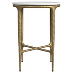 Introduce an artistic touch to your home with this stunning round side table, where luxurious materials and sculptural design meet. The table boasts a genuine white marble top that sits gracefully atop a hand-hammered steel frame with a rich gold finish. The organic texture of the frame adds an intriguing contrast to the smooth marble, offering a piece that’s both functional and visually striking. Perfect for contemporary and eclectic interiors, this round side table arrives fully assembled, making it an effortless addition to your living space.