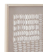 The Baguio Wall Art features a neutral organic style with folded rice paper pieces arranged in both vertical and horizontal patterns, creating a dynamic, geometric design. The soft linen background enhances the piece with a natural texture, while the off-white frame adds a subtle and refined touch. This artwork offers a sophisticated balance of simplicity and texture, making it a versatile addition to a variety of interior styles, bringing both elegance and visual interest to any space.