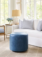 Barclay Butera Upholstery - Three Arch Leather Swivel Ottoman - Blue