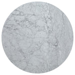 Elegant and timeless, this round dining table is a statement of refined luxury. The genuine Italian white marble top exudes sophistication, with natural veining that makes each piece unique. Resting on a sleek black metal pedestal base, the design balances organic beauty with modern minimalism. The smooth, spacious surface invites intimate gatherings and memorable meals. Whether gracing a contemporary dining space or a stylish breakfast nook, this table brings a touch of understated opulence to any setting.