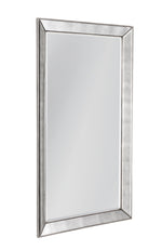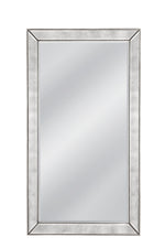 • This large floor mirror features a silver antiqued mirror frame bringing a glamorous style to the home