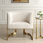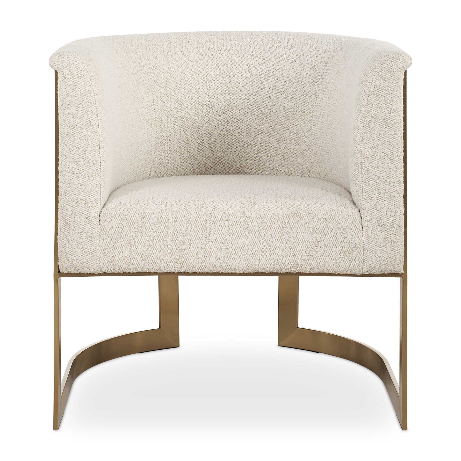 - Stunning From Every Angle, The Wrap Around Stainless Steel Frame Is Finished In Brushed Gold, Encapsulating A Plush Seat Upholstered In A Knubby Boucle In Driftwood Tan. Seat Height Is 20".