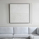 Below The Surface Hand Painted Canvas Speaks Volumes With Its All-white Palette And Intriguing Heavy Texture. A Slim, Black Gallery Frame Completes The Artwork. Due To The Handcrafted Nature Of This Artwork, Each Piece May Have Subtle Differences.