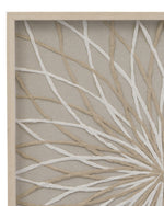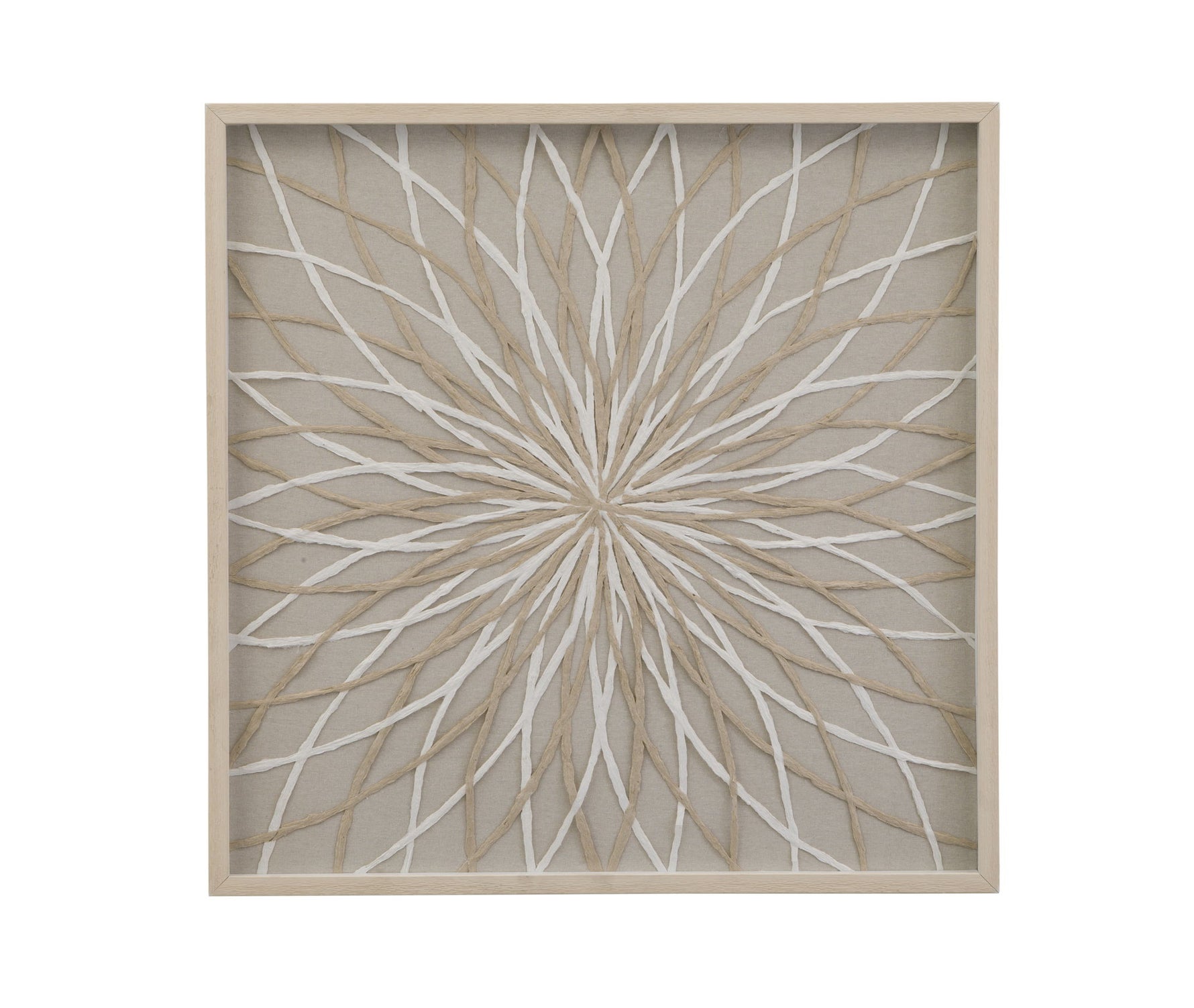 Bengaline Wall Art is uniquely crafted piece of art featuring woven natural materials framed in a shadow box under glass in a natural wood frame.