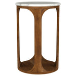 Elevate your living space with this sophisticated side table, blending timeless materials with modern design. Featuring a stunning round genuine marble top, it offers a luxurious surface for displaying decor or holding beverages. The sturdy frame is expertly crafted from solid mango wood, showcasing natural wood grain details that add warmth and character. Perfect for living rooms, bedrooms, or entryways, this side table is a functional piece of art that effortlessly complements a variety of interior styles.