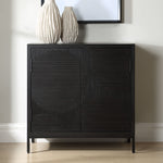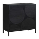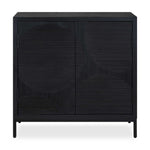 This Cabinet Features A Stylish Carved Circle Pattern In A Chic Black Matte Finish, Giving The Cabinet An Unique Elegance. Push To Open Doors, Oak Grain, And A Thin Raised Metal Base Complete This Contemporary Look.