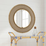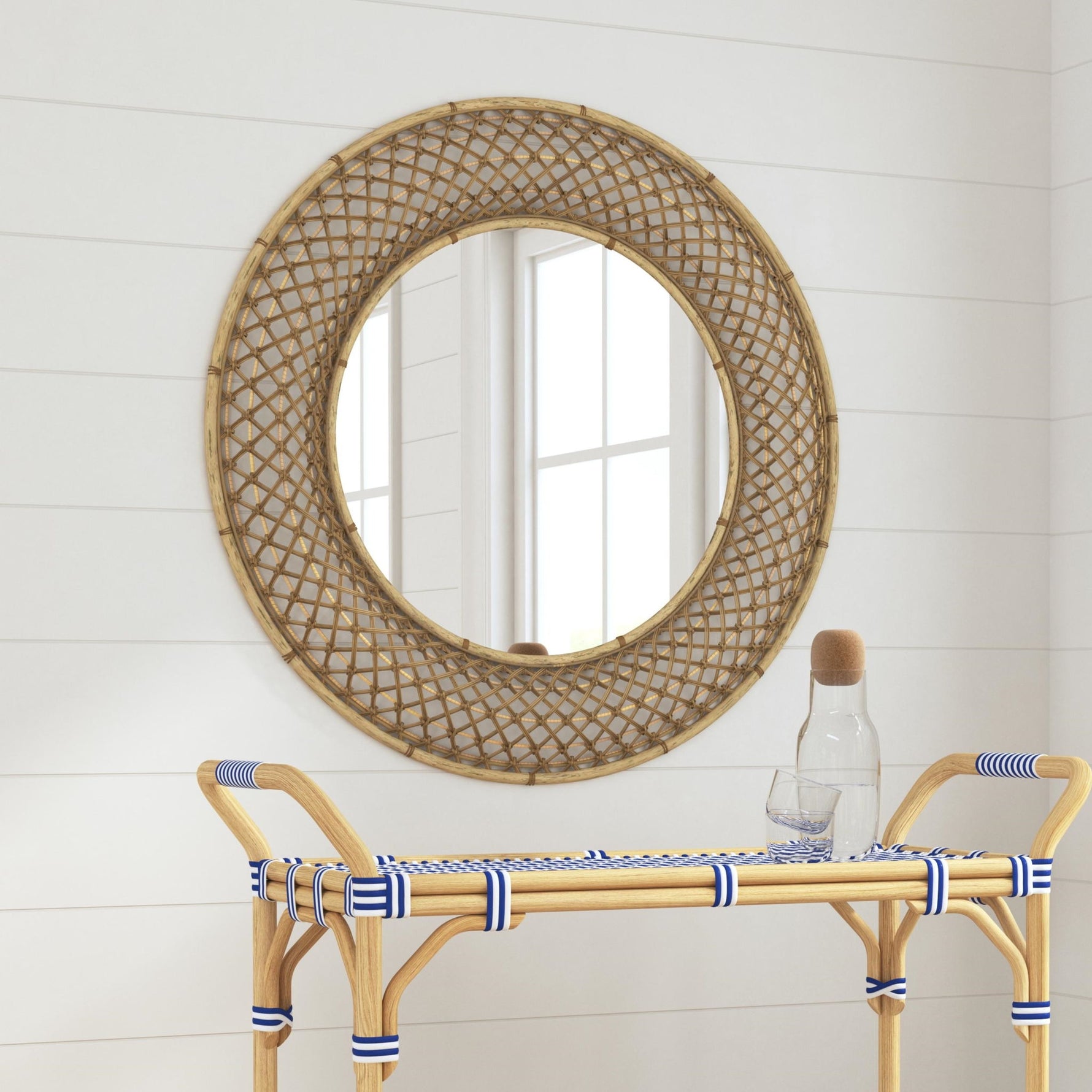 The Biedel Wall Mirror is round Coco wood basket weave frame.