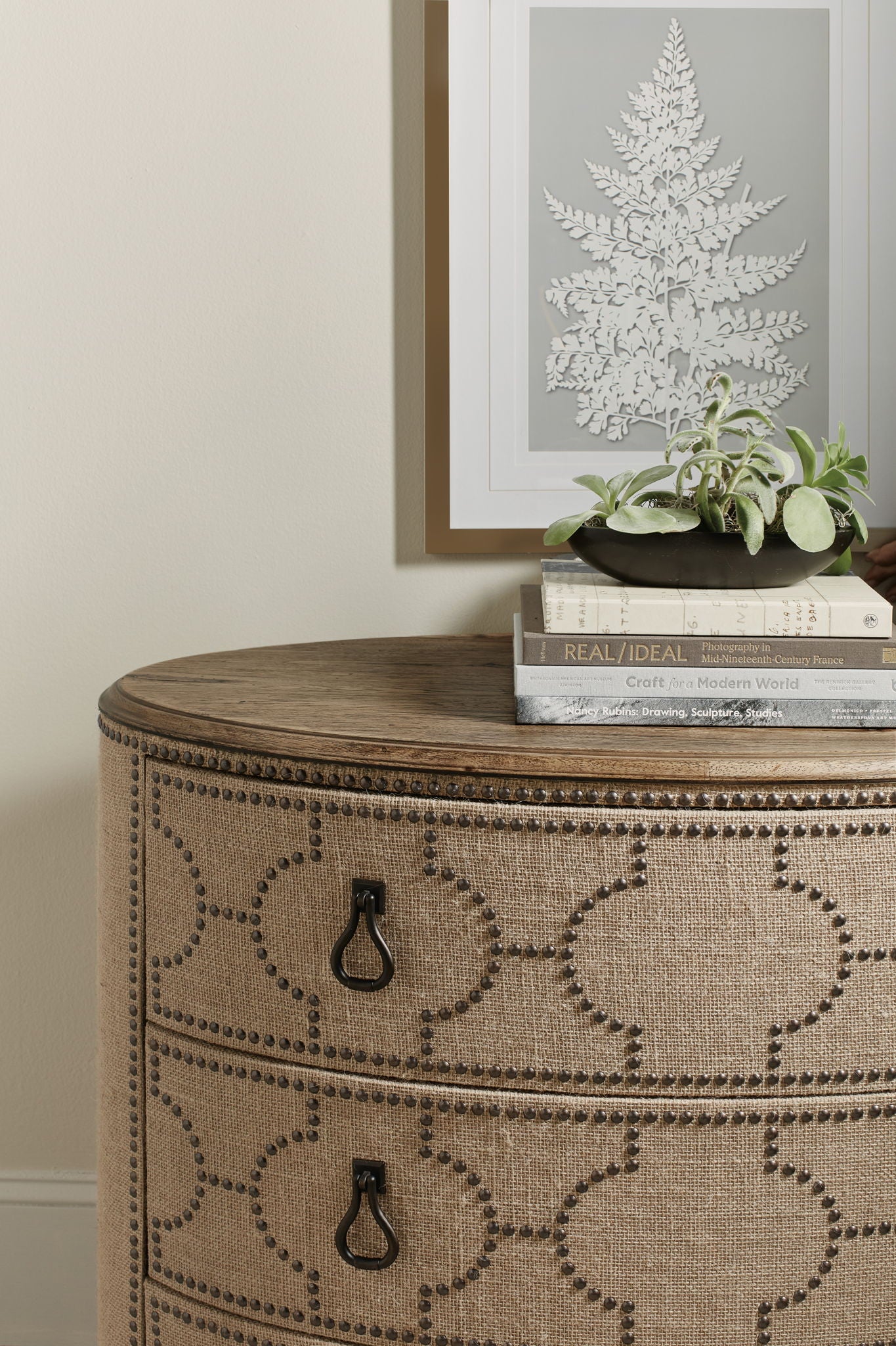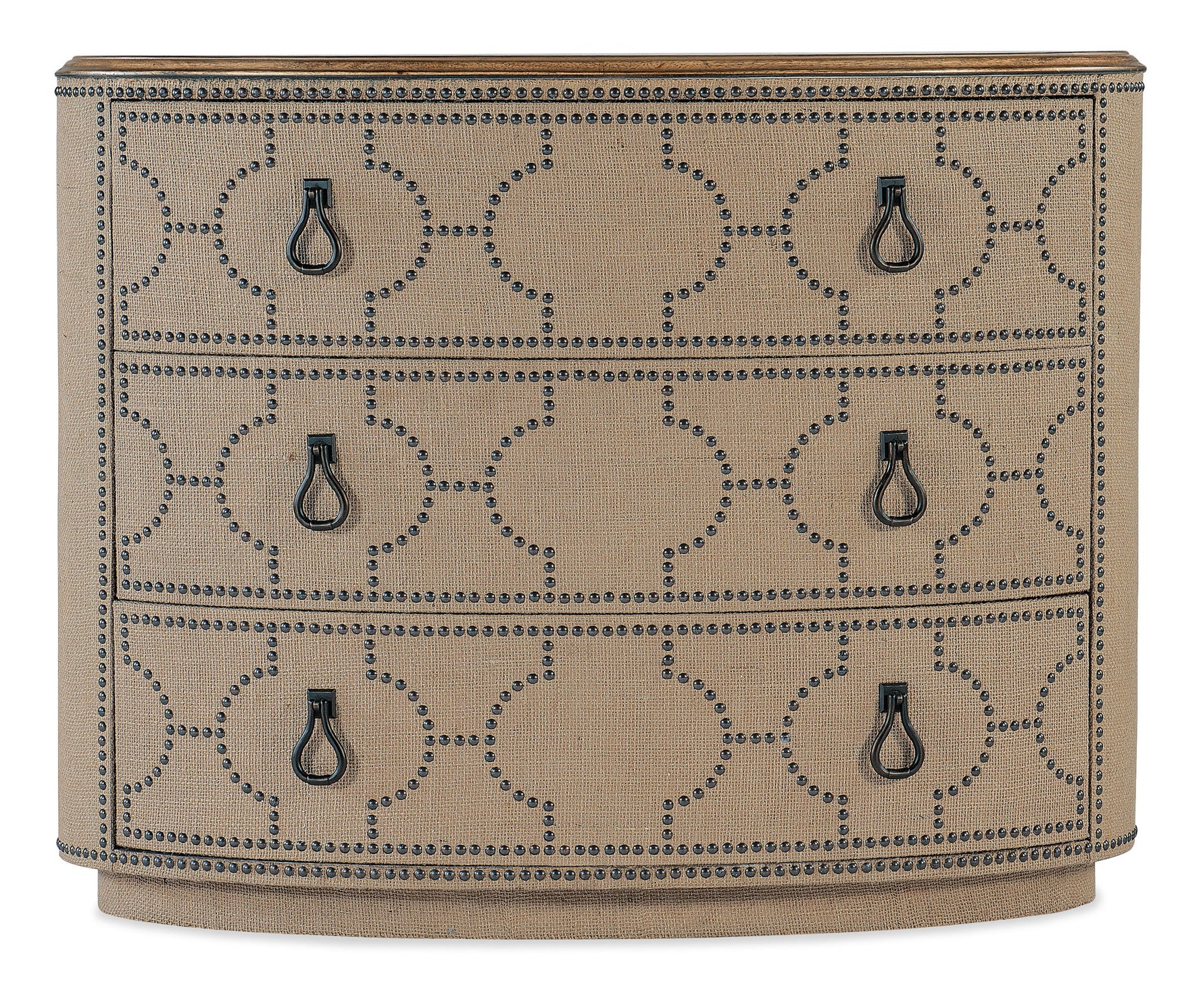 Unit price perVintage and tactile with a chic flair, the Big Sky Three-Drawer Chest combines a Pecky Hickory Veneer solid-wood-edged top in a Vintage Natural finish revealing the authentic knots and wood grain with a burlap-wrapped case accented by a patterned nailhead design. With three self-closing drawers, the top drawer has a removable felt liner and the bottom drawer is cedar-lined.