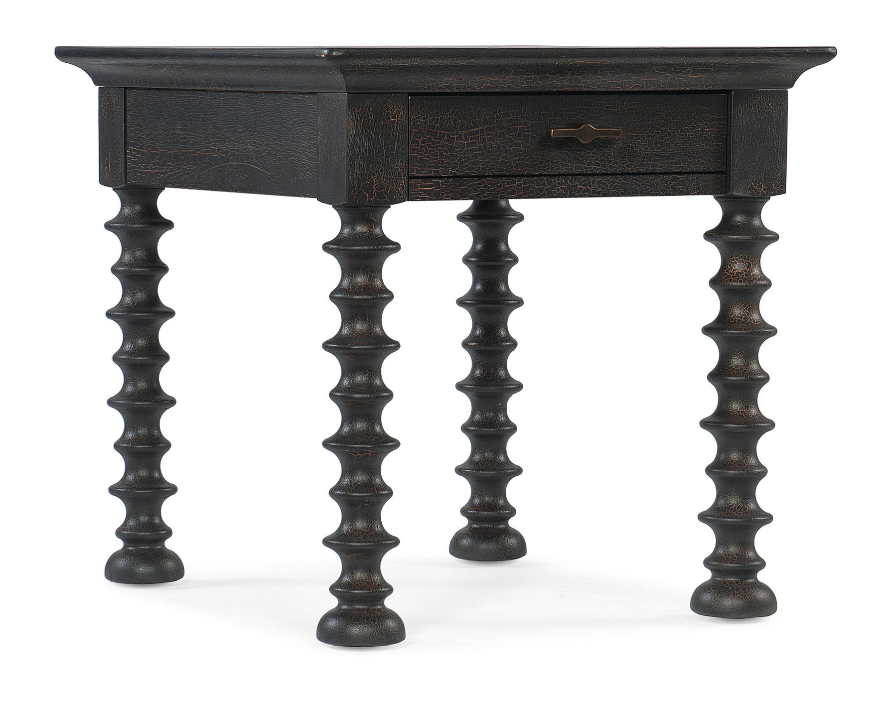 Unit price perThe vintage design of the Big Sky Turned Leg End Table evokes a simpler time and place in the natural beauty of the American countryside. Crafted of Pecky Hickory Veneers with a solid-wood edged top, it’s finished in Charred Timber, inspired by the restorative beauty of a fire-ravaged forest, and accented by a dark brushed bronze metal bar pull.