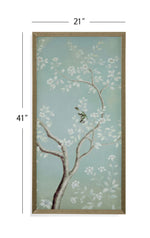 Birds and Flowers II features a matte paper print with a 1" brushed silver with gold undertones molding.