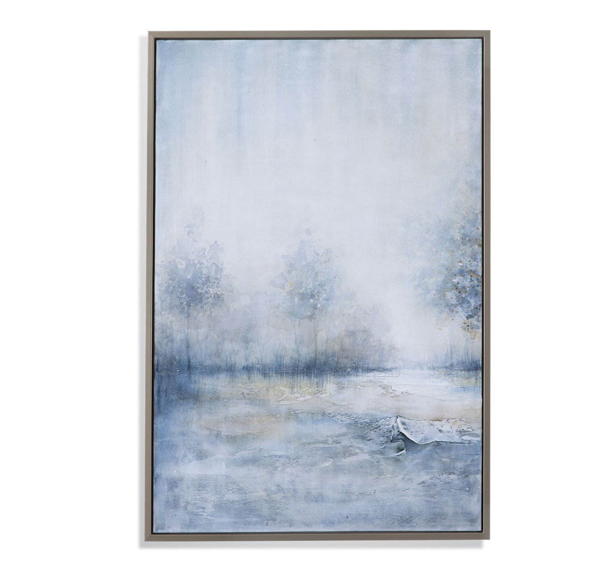 Blewes is a 2 piece limited edition diptych giclee on canvas framed with a clean lined champagne molding. D-ring or sawtooth picture hanging hardware included. Material: Canvas, pine wood, PS molding. Weight: 24 LBS. This piece of art is hand painted by a skilled artist lending itself to a unique technique and will vary slightly. COO: China. Vertical.