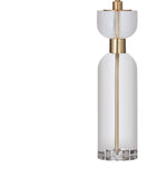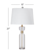 The Bollin Table Lamp combines a crystal and brass base, offering a perfect balance of modern elegance and refined style. The sleek design adds sophistication to any room, while the white tapered drum shade softens the light, creating a warm, inviting atmosphere. This lamp's timeless appeal fits seamlessly into a variety of interiors, enhancing your space with both function and beauty. The Bollin Table Lamp is a versatile piece that brings contemporary charm to your home decor.