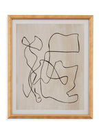 Bound I features abstract ink scribbles on a cream background with white border and a simple natural wood frame.