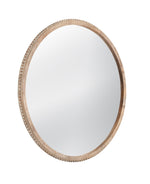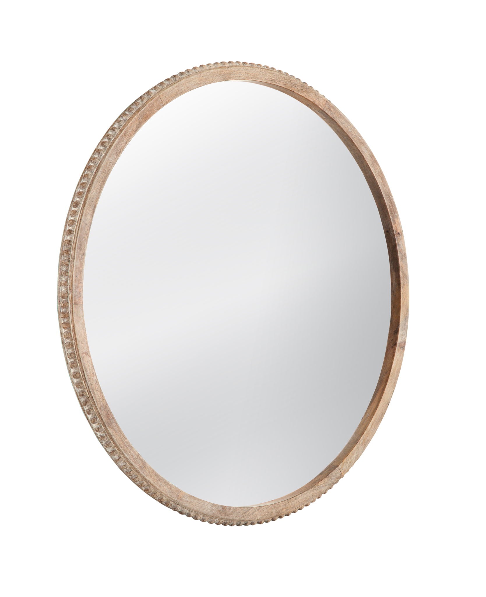 The Brahms Wall Mirror offers a charming addition to any space with its traditional coastal style. Crafted with a round wooden frame featuring delicate carved edging, it brings warmth and character to your decor. The brown hue with a white wash finish adds rustic elegance to your home.