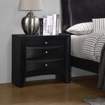 As part of the Briana collection, this nightstand is an attractive accent. Constructed from tropical hardwood and Asian veneer for dependability. It features a chambered trim and chambered drawer fronts. Drawers are fashioned with brushed chrome knobs for a trendy appeal. Finished in back, this nightstand looks great with a contemporarily styled table lamp.