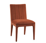 Discover the Brianne Rust Dining Chair, a fusion of modern glam and comfort. Its uniquely shaped back and legs wrapped in earthy rust-colored velvet fabric offer style and coziness. Crafted with a solid hardwood frame and high-density foam, it ensures durability and comfort. The rust finish and lush velvet create a warm ambiance.