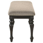 Instill casual elegance at a dining table or bring a refined touch to your entryway with a traditional backless bench. Its streamlined silhouette is accentuated with beautiful turned legs, offering classic character and dimensionality in any room. The versatile design features a charcoal gray sand-through wood finish that creates depth and richness. Its seat boasts comfortable and supportive foam cushioning. Brown upholstery is soft and multi-tonal to create a dimensional look and feel that blends in virtually any surrounding color scheme.