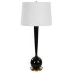 A Nod To 1960's Mod Design, The Brielle Table Lamp Features A Modern Ceramic Silhouette Finished In A Polished Black Glaze That's Accented With Plated Brushed Brass Details. The Slightly Tapered Round Hardback Shade Is Covered In A Crisp White Linen Fabric.