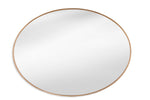 The Brigitte Wall Mirror showcases a sleek oval metal frame with a luxurious gold finish, adding a touch of modern elegance to any space. Crafted with modern aesthetics in mind, its brushed gold frame beautifully encases the oval mirror, creating a chic focal point for your room.
