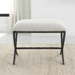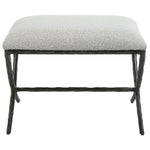 • With Clean Contemporary Lines, This Cast Iron Base Features A Chiseled Texturing With A Distressed Charcoal Finish. Topped With An Upholstered Seat In A Casual Ivory And Light Gray Boucle Fabric.
