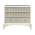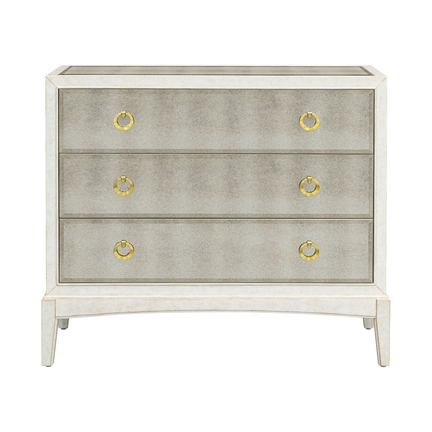 The Kiara Hall Chest exudes a vintage charm with its antique cream wood frame, providing a classic and elegant foundation. The body and drawers of the chest are enhanced by an antique mirrored finish, which adds a touch of glamour and reflects light to brighten any space. The mirrored finish is tastefully aged, giving the piece an heirloom quality. Round, golden drawer pulls contrast beautifully against the muted tones of the chest, offering a luxurious touch to this functional storage piece. This hall chest marries the practicality of storage with the refined aesthetics of traditional furniture design.