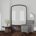 The Brookings Floor Mirror combines modern sophistication with a touch of glam in a sleek black finish. Its classic Louis Philippe silhouette, with a rounded top and squared base, offers timeless elegance. Crafted from high-quality mirror and resin materials, it creates a bold focal point in any space. This striking mirror elevates your decor with its refined design and luxurious presence.