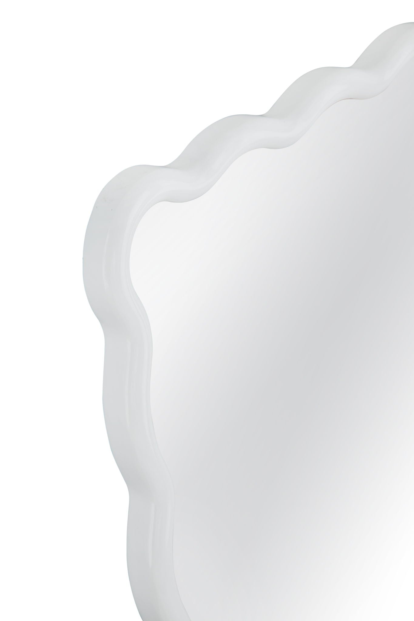 The Bryony Wall Mirror is an ideal accent to brighten your space, featuring a white lacquered mirror frame for a playful touch. Its wavy edges offer a fun twist on the traditional rectangular shape, adding personality to any room. Crafted with a white lacquered finish, this mirror effortlessly enhances your decor.