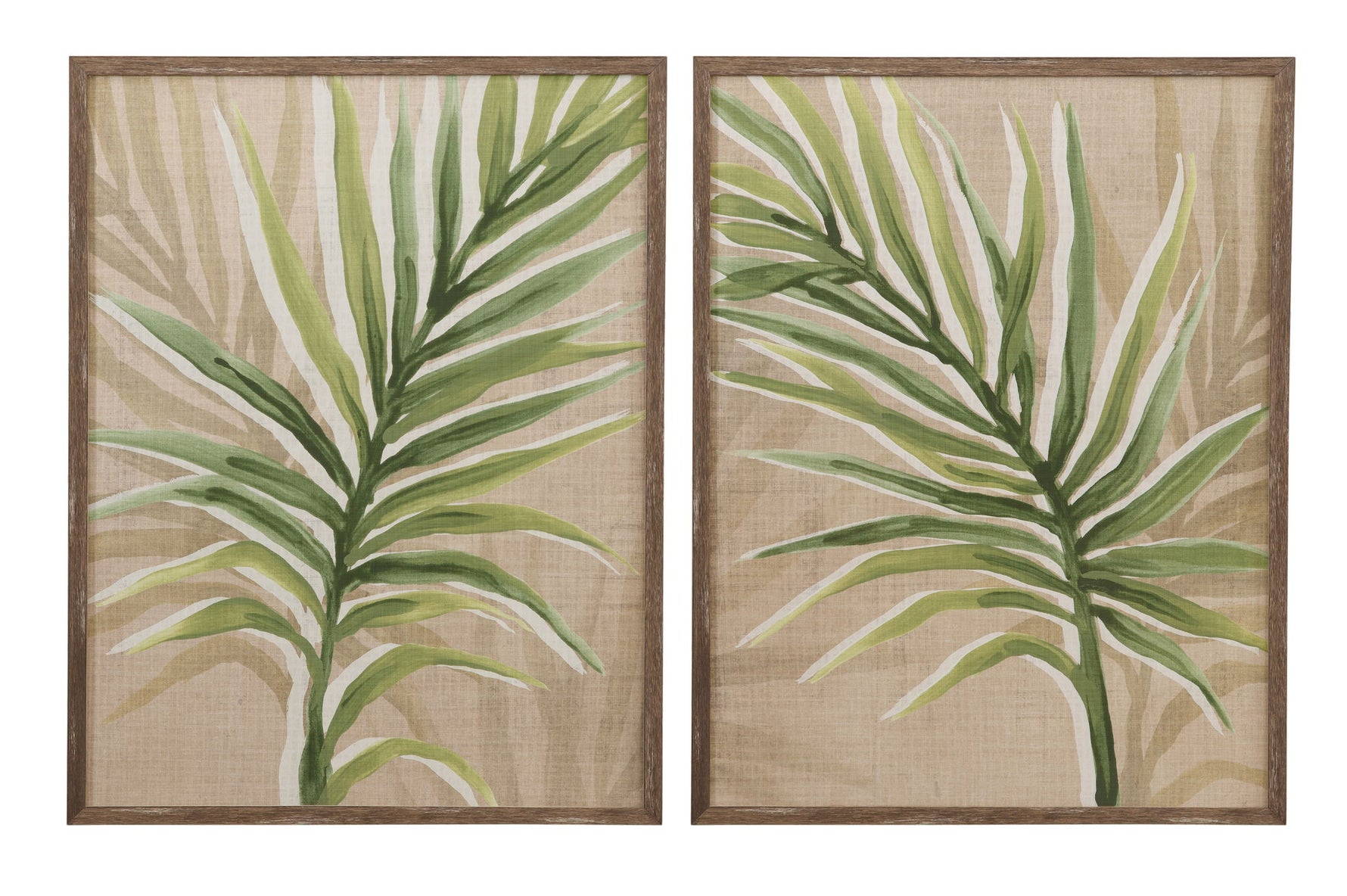 Burlap Palm Frond II Framed Print - Light Brown / Green